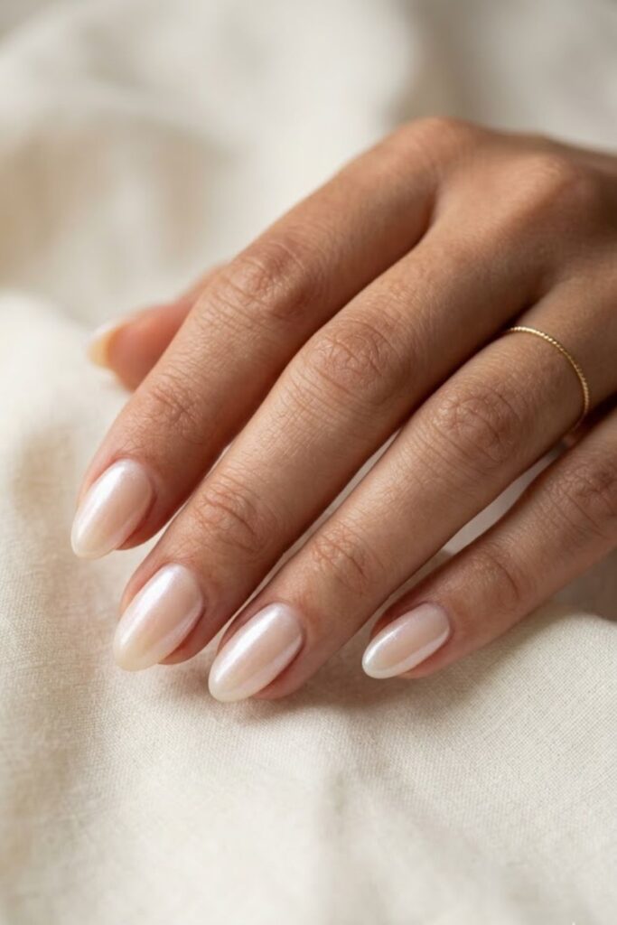 Think glazed donut but even more subtle for your natural length. This set uses a thin acrylic layer topped with pearl powder for that viral shimmery finish. It’s the ultimate clean girl look that goes with every single outfit in your closet.