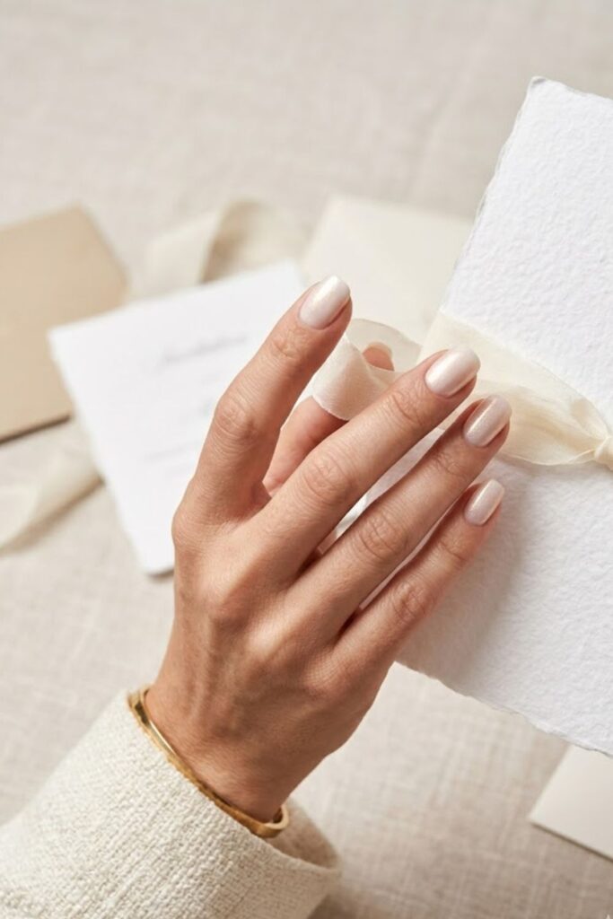 Vanilla chrome is the ultimate hack for making simple nails look expensive. Your nail tech applies a champagne-toned pigment over a sheer beige for a mirror-like finish that catches every bit of light. This set is a literal dream for weddings or graduation season.