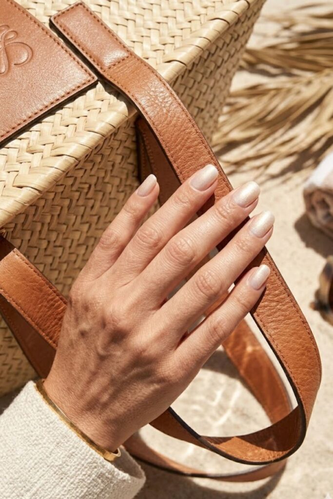 Soft white polish is mixed with a hint of champagne shimmer for a “milk bath” look that’s timeless. It’s a step up from a basic neutral but stays subtle enough for any occasion. This set makes your hands look instantly tan and glowing.