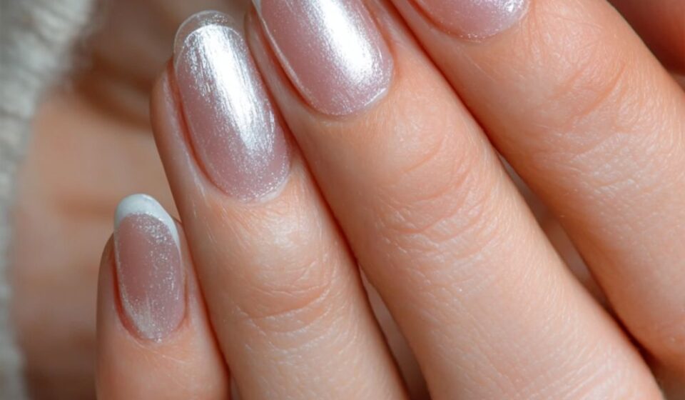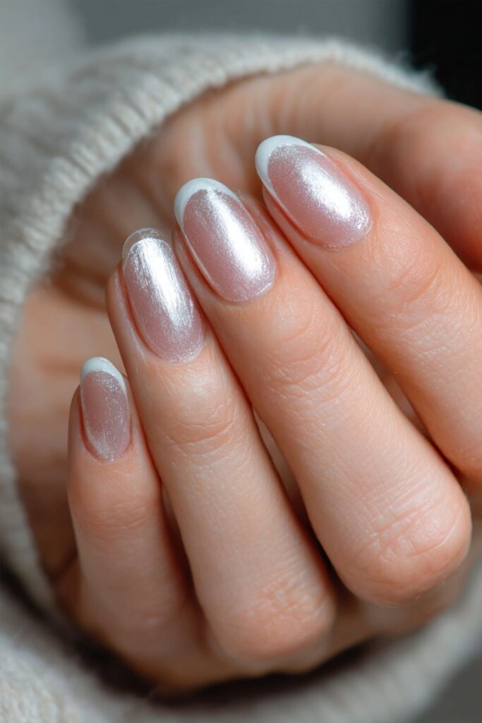 Ask for a fine silver pearl dust rubbed over a classic white French tip. This creates a soft, glowing metallic sheen that feels very coquette and delicate. Such a clean mani for anyone who wants a sophisticated sparkle that isn’t too chunky.