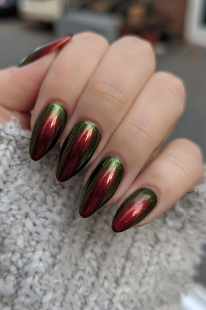 Shifting from toxic green to deep red, this duo-chrome polish looks exactly like a poisoned fruit. The mirror-like finish is so sharp it almost looks wet. It’s a simple way to get a high-impact look without needing any complicated hand-painted art or extra charms.