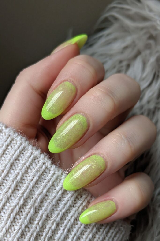 Bright neon green jelly polish makes these nails look like radioactive ooze in the best way possible. The translucent finish keeps the bold color from feeling too heavy or flat on your nails. Think retro horror movie vibes but made fashion for a fresh set that really stands out.
