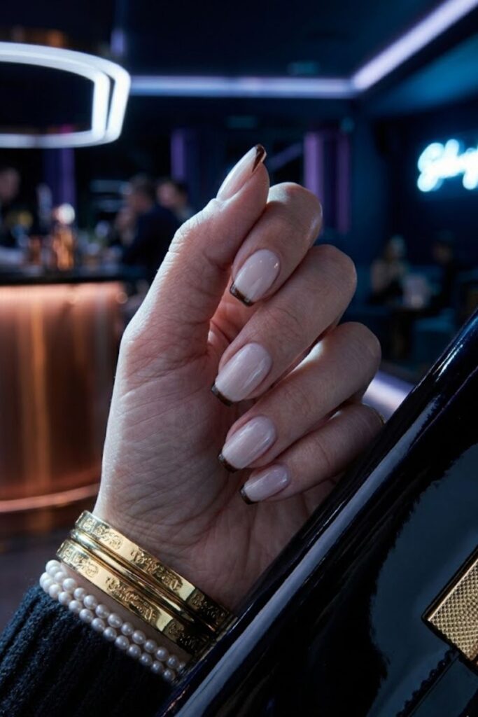 Rich coffee tones meet a super thin French tip on a nude base. Your nail tech can keep the lines sharp and crisp for that high-end feel. It’s a moody take on a classic that goes with everything in your closet from day to night.