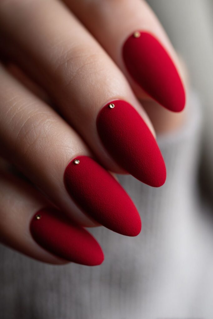 Matte meets metallic here if you add a tiny gold stud at the base. The flat finish makes the bright red pigment look incredibly saturated and bold. This set is for the baddie who wants a clean, velvet-like surface without any shine.