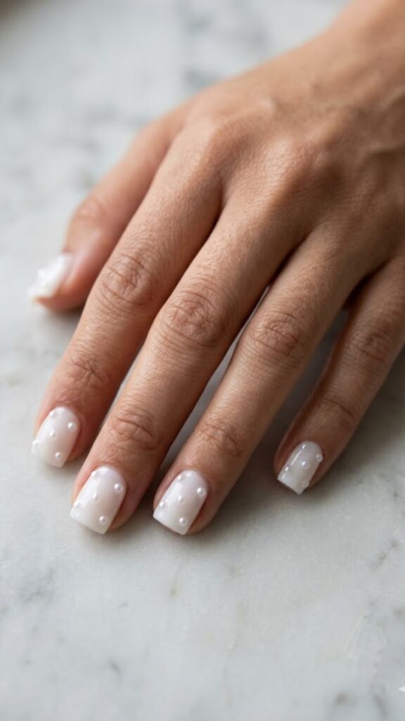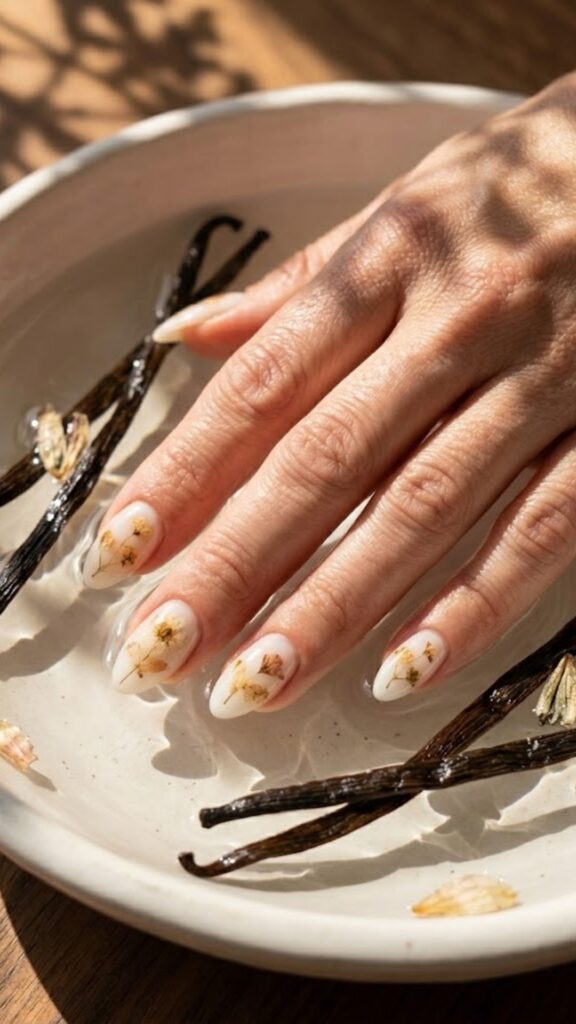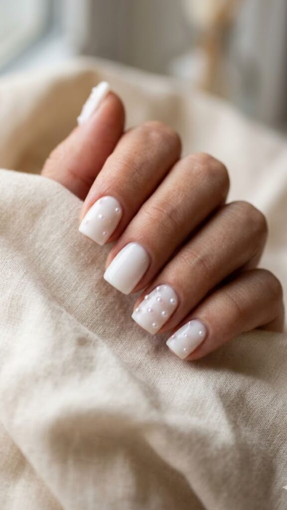 Soft and dreamy, this look features a semi-sheer white that looks like actual cream. Your nail tech can add tiny pressed flowers or keep it solid for a simple, rich finish. It’s the ultimate quiet luxury choice for your next salon visit.
