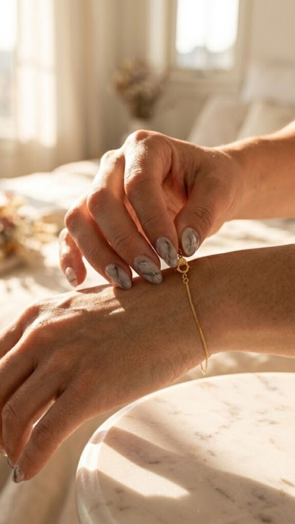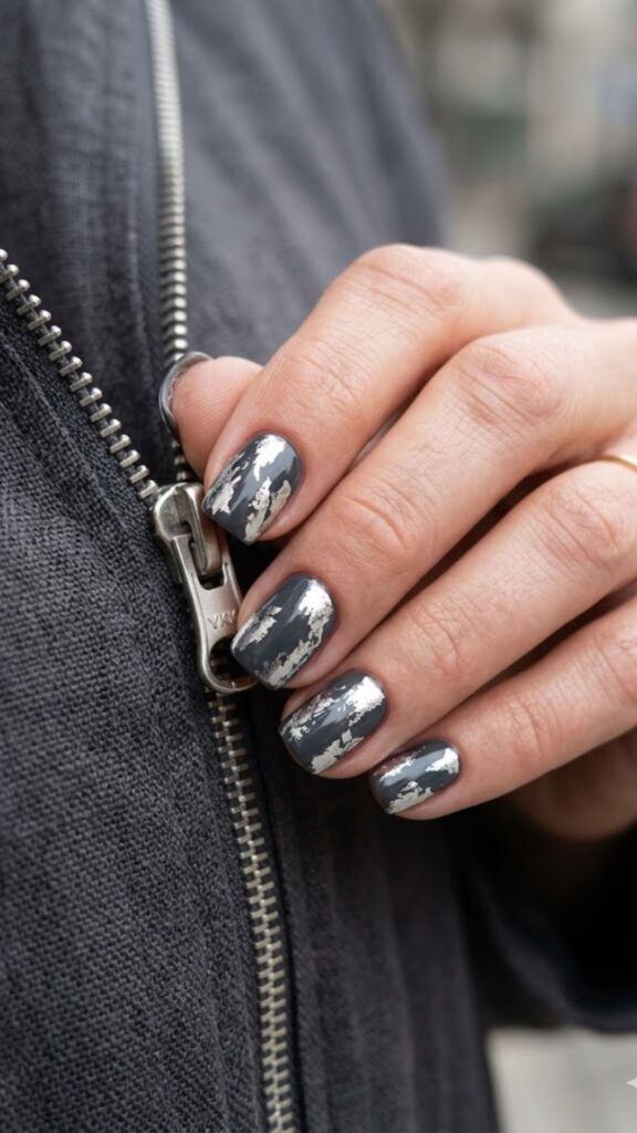 For a touch of sparkle that doesn’t feel like a craft project, try delicate silver foil flakes. Your nail tech can press them into a neutral base for a metallic pop that stays classy. The vibe is expensive and very intentional.
