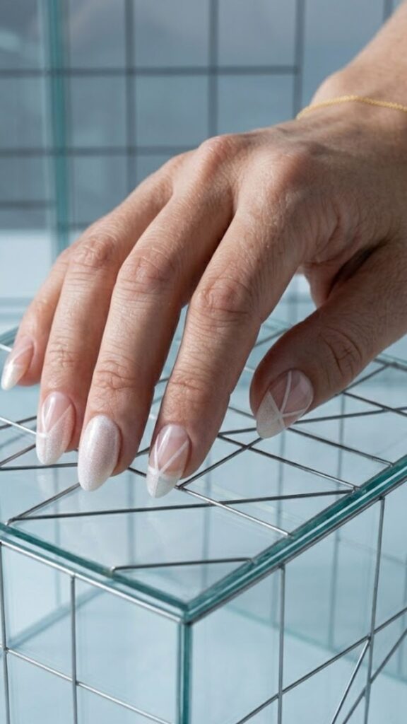 Obsessed with this clean approach to nail art. By leaving parts of the natural nail exposed under a clear gel, you get a geometric look that stays subtle. It’s the perfect way to do art while keeping the overall vibe very sophisticated.