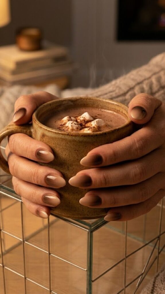 Rich brown tones melt into a nude base for a gradient that looks totally seamless. This airbrush style is huge for 2026 because it looks so polished on shorter lengths. Such a solid pick for a moody, professional set that feels warm.