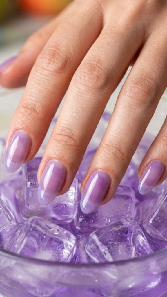 Jelly candy aesthetic vibes are everywhere, and this translucent purple is the perfect way to wear it. The syrup gel gives a glassy, watery finish that looks light and airy on short nails. Such a fun yet polished way to add color.