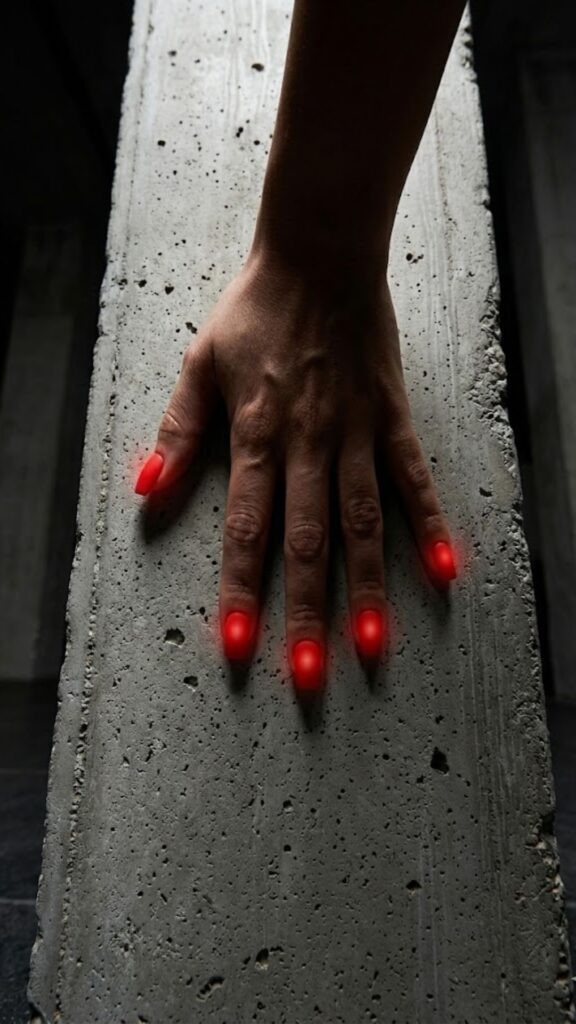 Glass nails use a clear tip with a tinted red overlay for a stained-glass effect. Even on a short square set, the transparency is super cool and modern. It’s a sleek look that feels very 2026 and fresh.